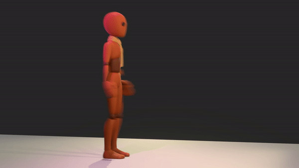 My very first animation for the character controller was the one that I learned most from. I experimented with secondary animations like the tie swaying back and forth. I utilized the animation layers tool in Blender to seamlessly blend together the wave and the walk animation. Before I finalized the animation I wasn't satisfied with how stiff it looked, this is when I learned the importance of hip movements and toe movements. This is when I really dialed in and truly studied how I walked in my reference video. In the end, the floppy toes ended up being my favorite part of the animation. I wanted to give the character a friendly yet slightly clumsy look, and the final product displays that perfectly. (Note: It does loop perfectly, but the gif was too large of a file)
