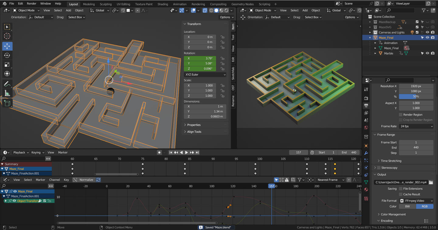 Not your typical running animation, our character here is in quite a hurry! This is one of the first animations where I started to experiment with overexaggerated movements. Another really fun piece where I decided to go in a different direction than I originally intended. Originally, I had a more realistic running animation, but as I started to become more comfortable with controlling a rig, I ended up adding my own little charms to it. If you have ever seen Toy Story, my inspiration was how Woody runs in those films. If you aren't familiar, he runs very clumsily, flailing his arms and arching his back backward like his head is too heavy to support the weight of it. To really emphasize that speed, I made the scarf appear to be flapping in the wind.