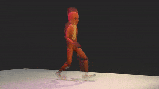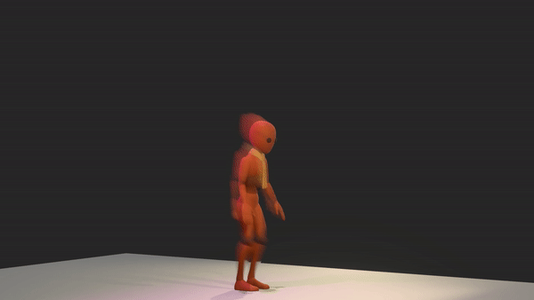 My very first animation for the character controller was the one that I learned most from. I experimented with secondary animations like the tie swaying back and forth. I utilized the animation layers tool in Blender to seamlessly blend together the wave and the walk animation. Before I finalized the animation I wasn't satisfied with how stiff it looked, this is when I learned the importance of hip movements and toe movements. This is when I really dialed in and truly studied how I walked in my reference video. In the end, the floppy toes ended up being my favorite part of the animation. I wanted to give the character a friendly yet slightly clumsy look, and the final product displays that perfectly. (Note: It does loop perfectly, but the gif was too large of a file)